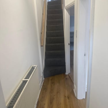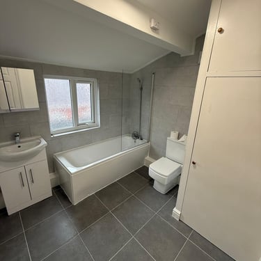 The ground floor features a bright and spacious living room, along with a dining room both with new flooring and fresh neutral decor throughout. The sleek, newly fitted kitchen includes modern units and an oven with Hob and extractor fan with direct access to the private rear yard, perfect for relaxing.